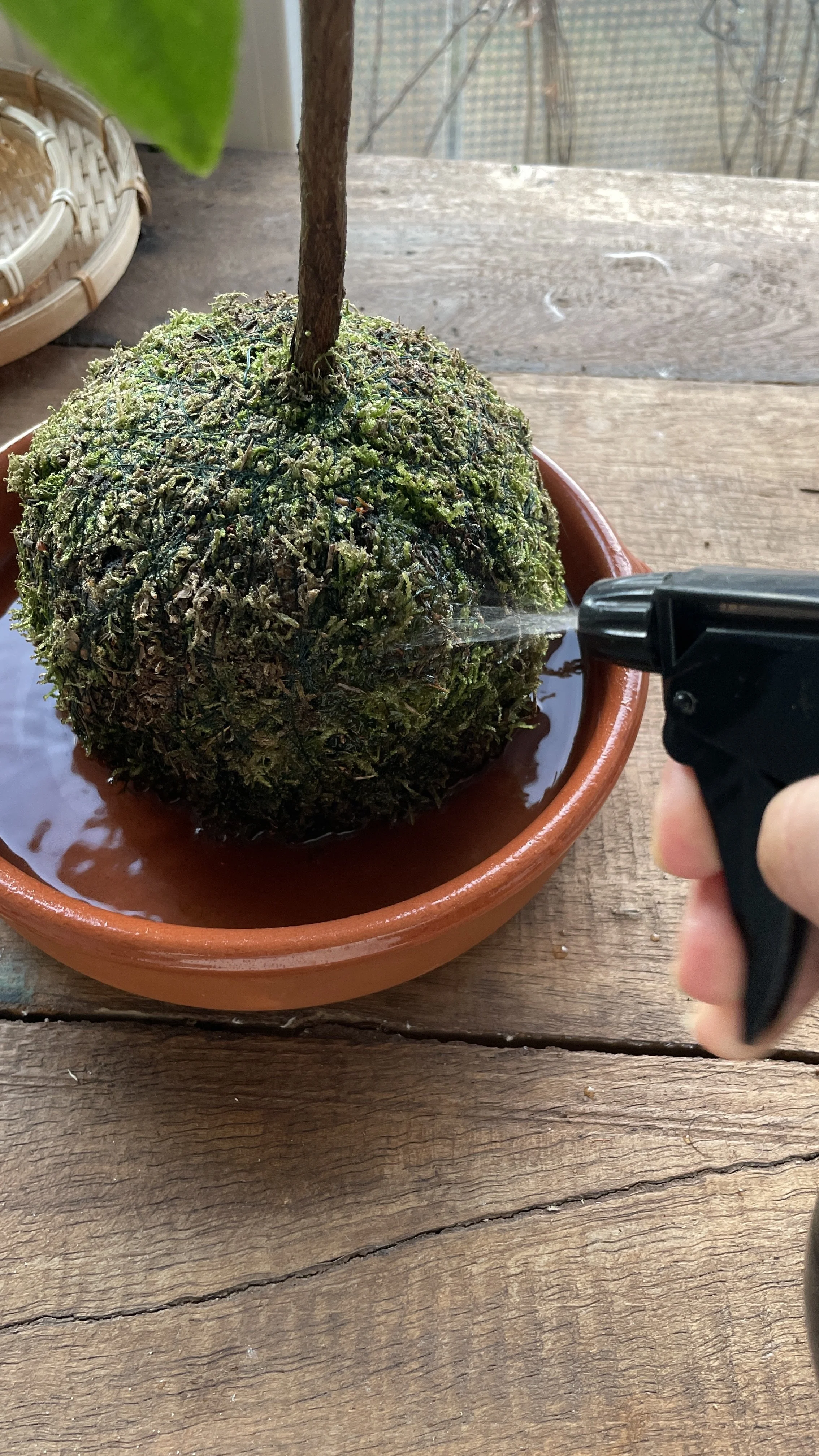 Occasionally spray water on the moss to keep it green.